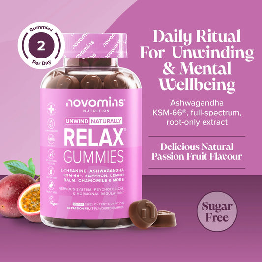 - Relaxation: When life throws stress our way, relaxation can feel easier said than done. Novomins gummies, like our tasty magnesium supplements, support the nervous system to relax the mind and body during stressful days