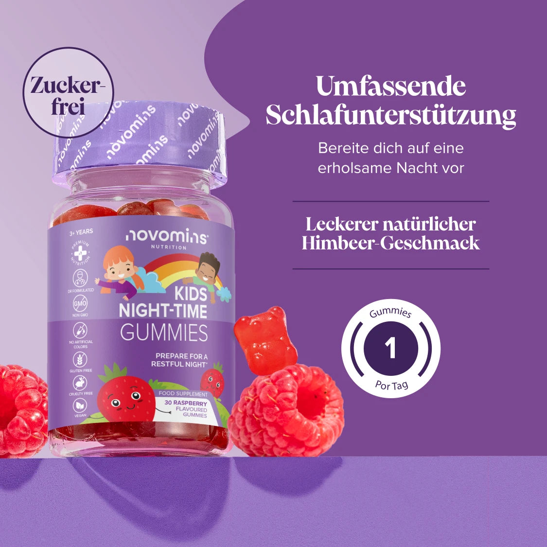 Erholsamer Schlaf ist ein Grundpfeiler für das Wachstum und die Entwicklung von Kindern. Unsere Kids-Gummibärchen werden jede Nacht von über 250.000 Kindern geliebt. Sichere dir dieses Angebot – nur für kurze Zeit!