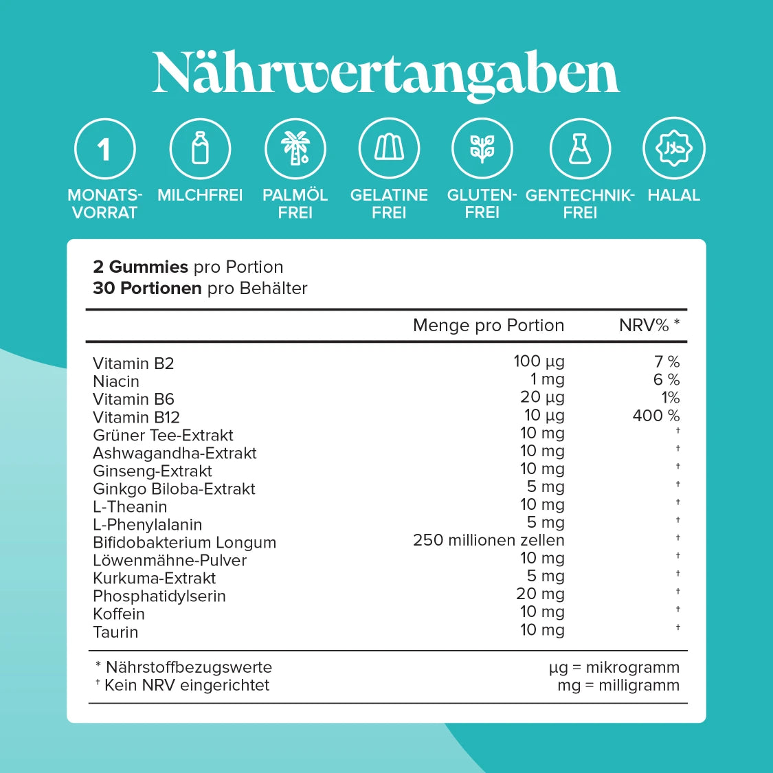 Das Mind & Focus Set wurde entwickelt, um deine kognitive Funktion, dein Nervensystem und deine allgemeine Gesundheit zu unterstützen. Mit einer wirkungsvollen Kombination aus Magnesium, Lion’s Mane und sorgfältig ausgewählten Pflanzenextrakten wie Ashwagandha, Maca und Kurkuma hilft dir dieses Set, Müdigkeit und geistige Unruhe zu bekämpfen und deine Widerstandskraft gegen tägliche Belastungen zu stärken.