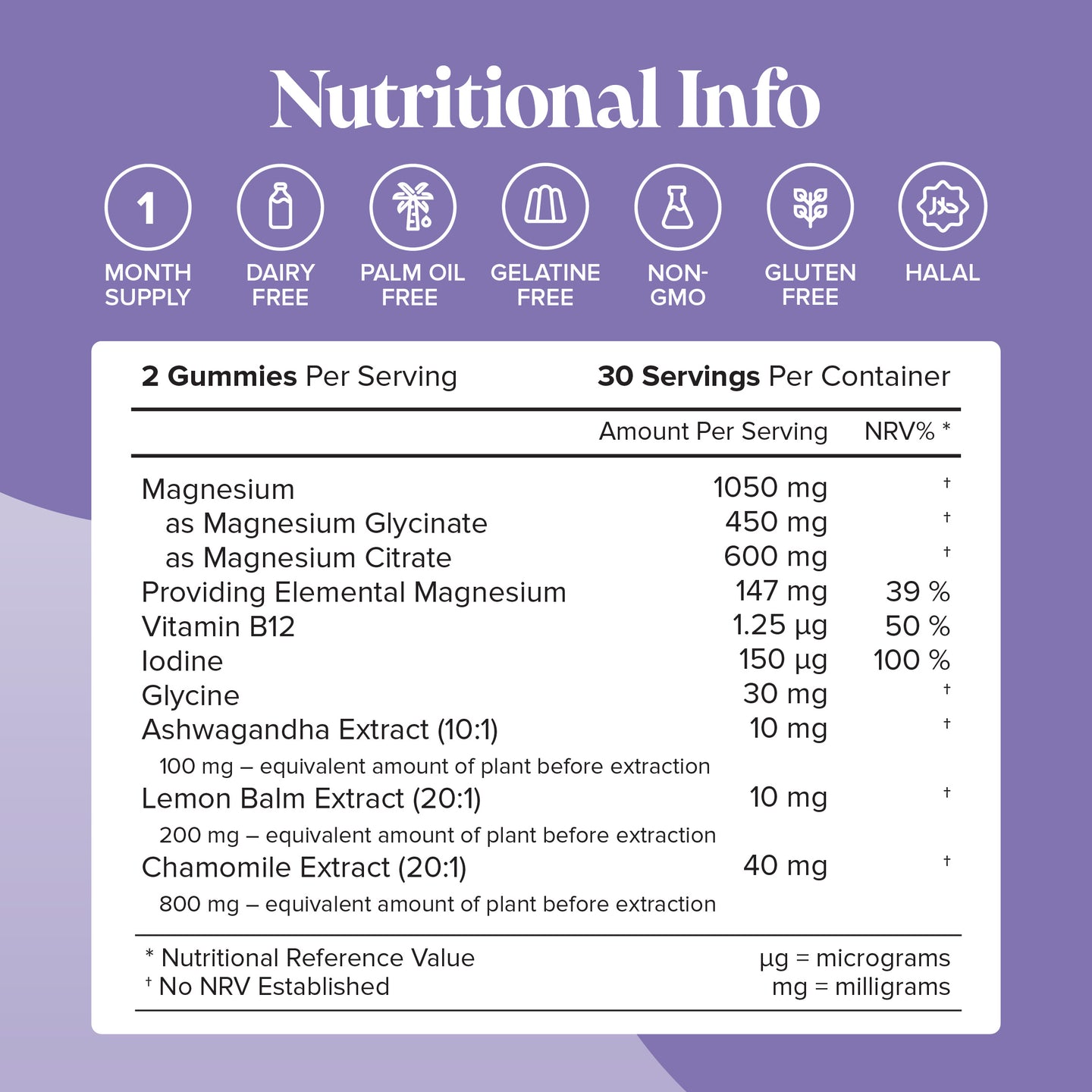 | *NRV | Nutritional Reference Value | |