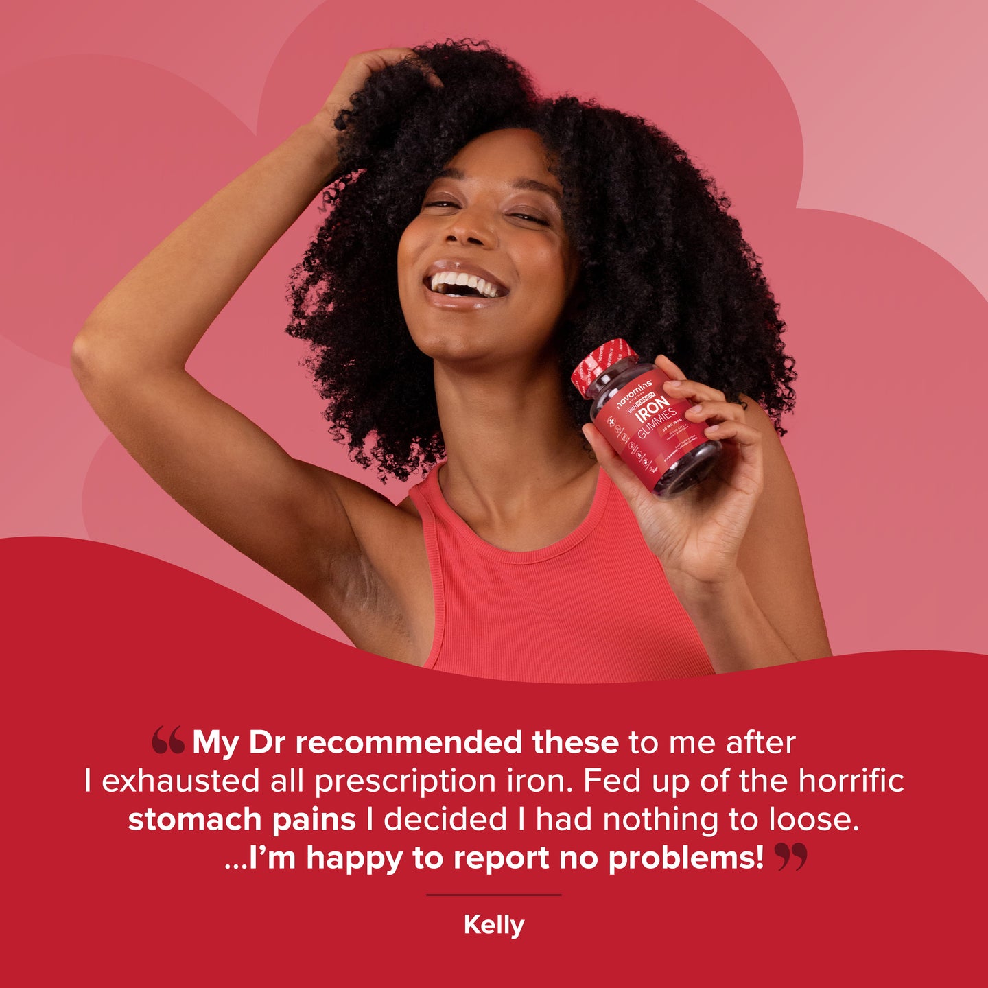 “Iron is important for general immunity and energy levels. As it supports a reduction in tiredness and fatigue I really feel the benefits of these gummies especially with my busy clinical schedule at Harley Street.”