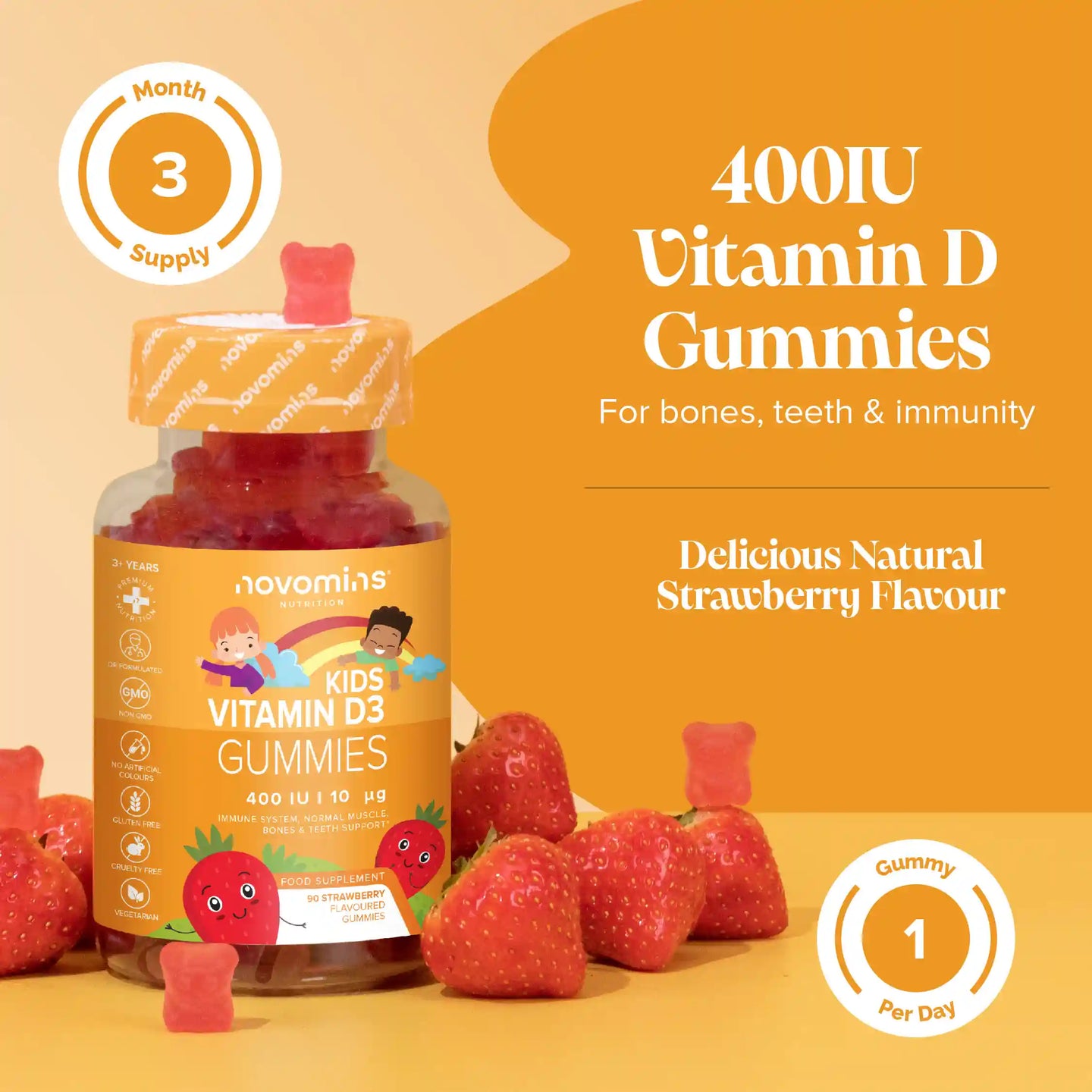 Support your child’s immune system and overall well-being with the Novomins Kids Immunity Bundle. Expertly formulated with a Kids Multivitamin, Vitamin D, and Calcium to contribute to normal immune function, bone development, and energy metabolism, helping them stay healthy and active every day.