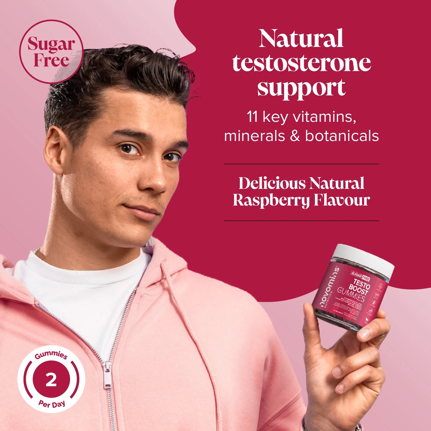 Novomins TestoBoost Gummies, are expertly formulated with 11 vitamins, minerals, and botanicals. Our advanced formula contains maca root, fennel seed, fenugreek, tribulus terrestris, and ginkgo biloba, vitamins B, D, and zinc; all designed to naturally support testosterone levels, energy, and stamina.