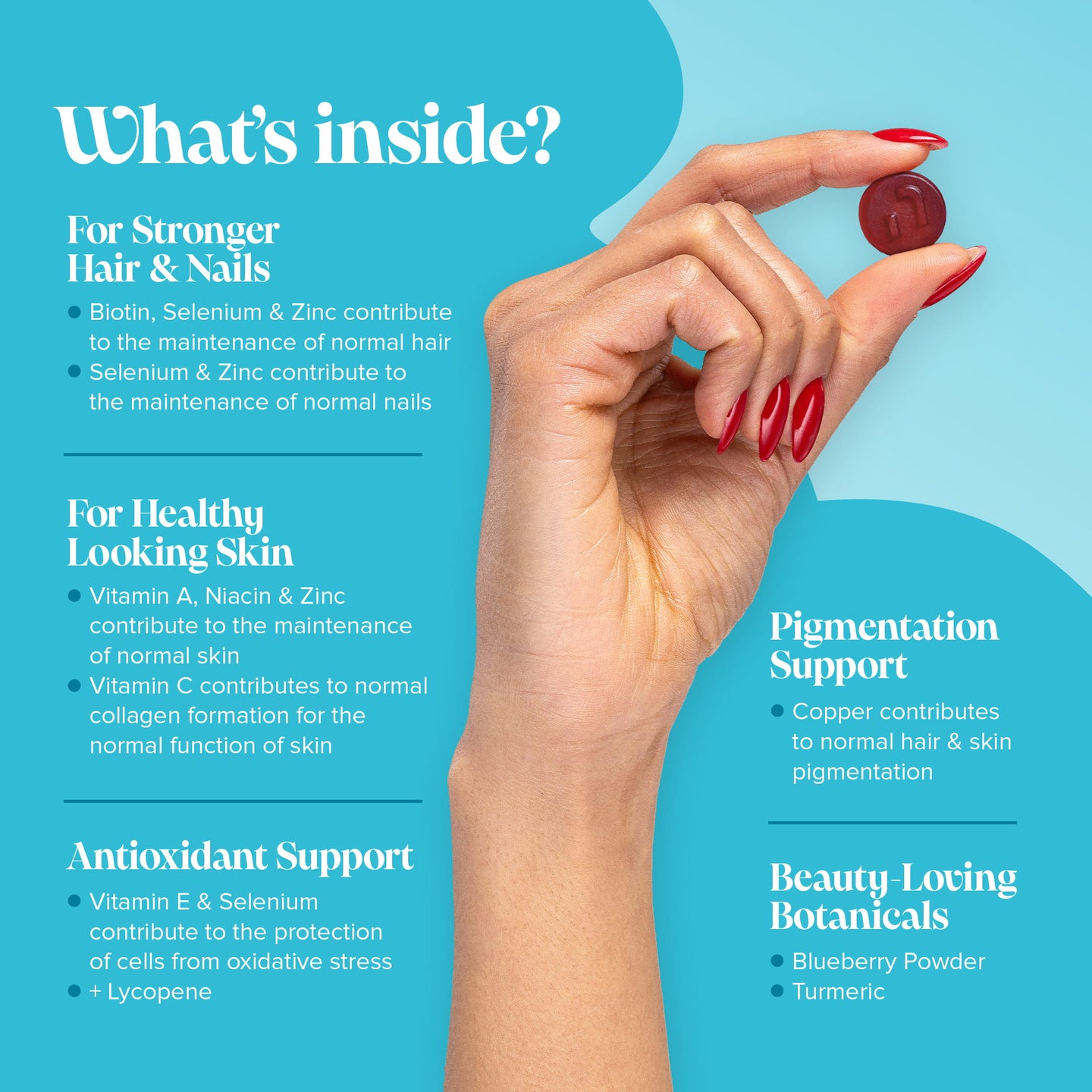I formulated the Hair, Skin & Nail Gummies as a solid skin and hair-first foundation. Vegan Society certified, our gummies target your skin's health, pigmentation, and complexion.