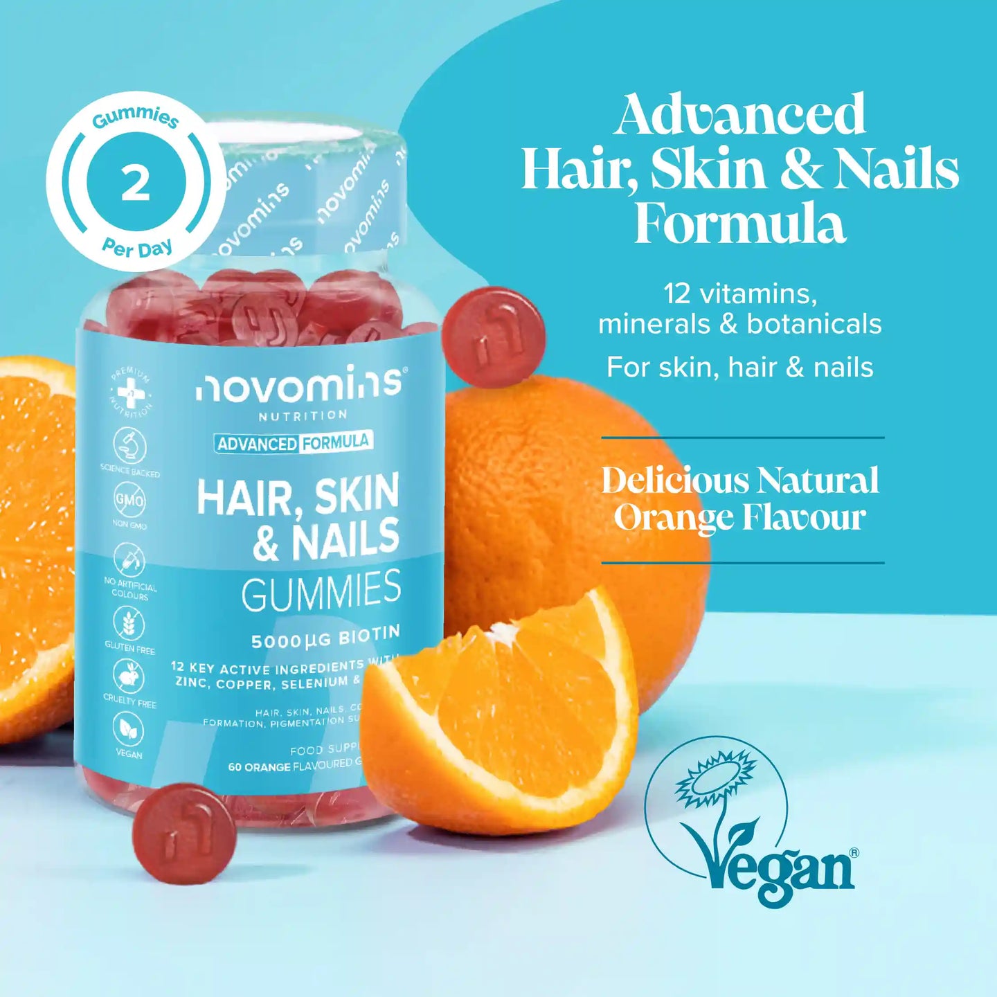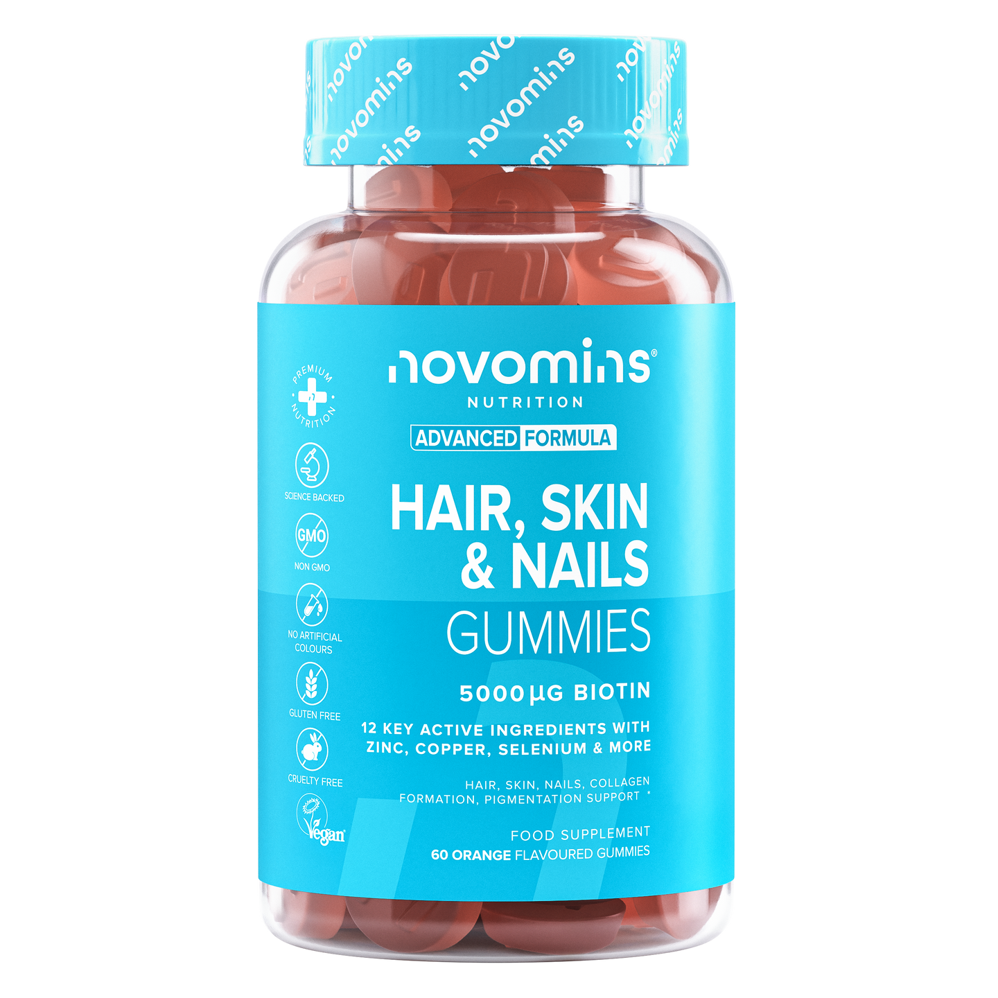 Novomins Hair, Skin & Nail Gummies are packed with 12 essential vitamins and minerals for glowing skin, strong nails, and vibrant hair. They are a delicious addition to your beauty routine that will get you feeling your confident self again.