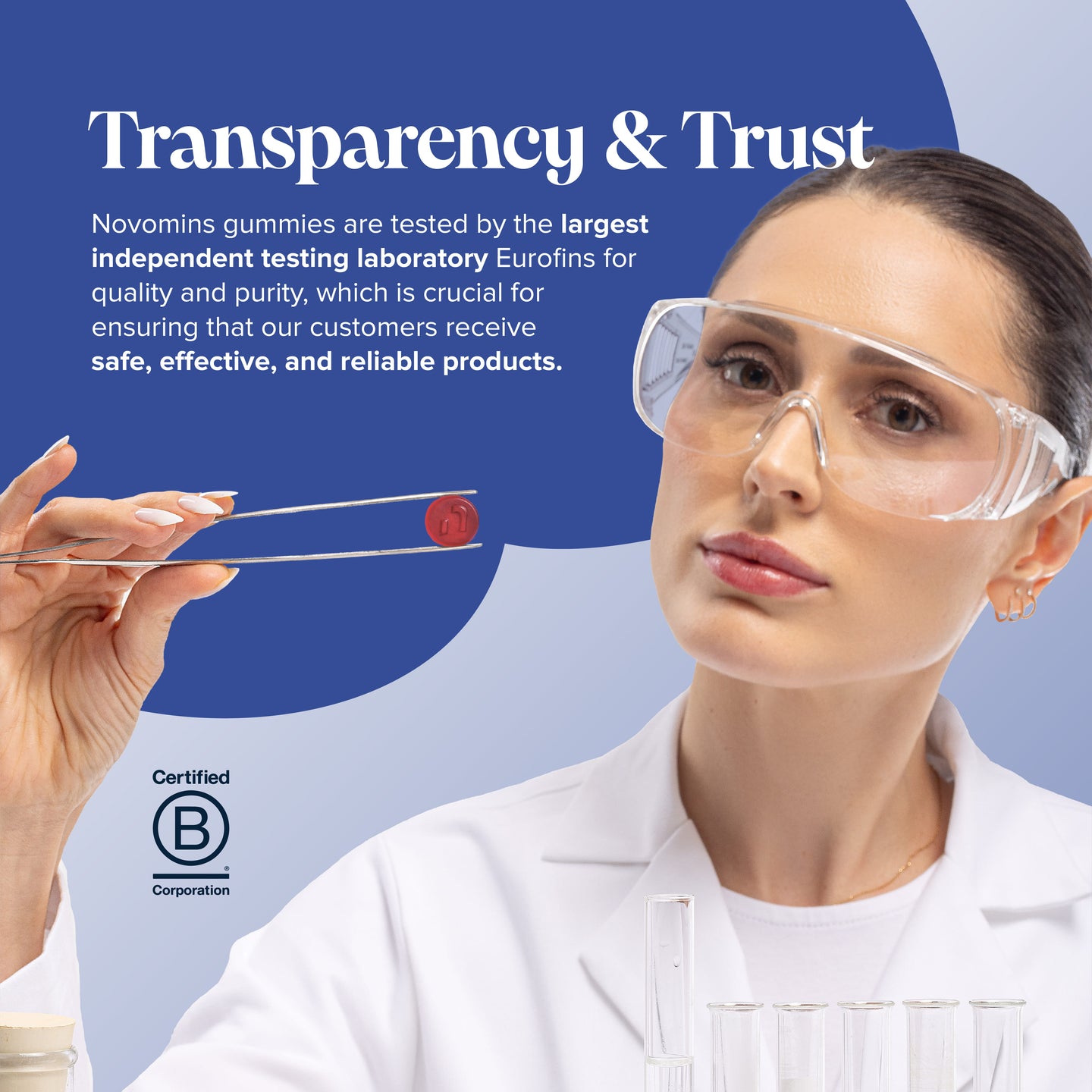 Novomins gummies aren’t just delicious, they’re formulated on serious science. We fill each gummy with high-quality, science-backed ingredients your body knows exactly how to use. No fluff, no filler, just expertly formulated support that actually gets absorbed. Because you don’t need to be a biochemist to achieve better nutrition, you just need better gummies.